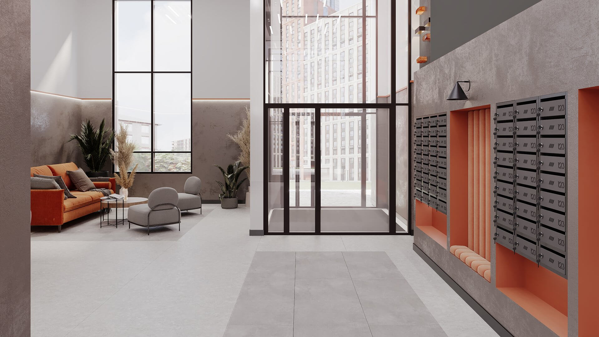 Дизайнерская отделка, качественные материалы и практичная эргономика соединены в единую концепцию, которая подчеркивает комфорт и функциональность. Ресепшен в лобби работает в режиме информационной поддержки жителей, а наличие колясочных и гостевых санузлов позволяет создавать сервис уровня премиум-комплекса. Внутренний интерьер лобби гармонично переходит в атмосферу всего комплекса, формируя ощущение целостности и продуманности пространства.