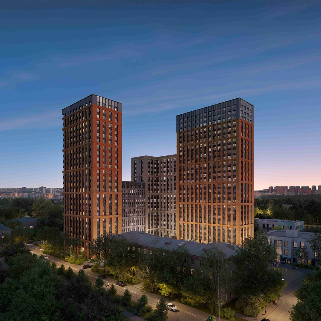 Архитектурный облик ЖК «Семеновский парк 2» подчеркнёт статусную роль комплекса в городской среде. Фасады в трёх цветовых решениях — красно-оранжевом кирпиче, бежевом меланже и мраморном оттенке — образуют ритмичный ансамбль с переменной высотностью от 12 до 26 этажей. Складчатая структура фасадов и хромированные элементы отражают свет и создают визуальный рельеф, подчёркивая классический стиль кирпичной архитектуры с современным уклоном.