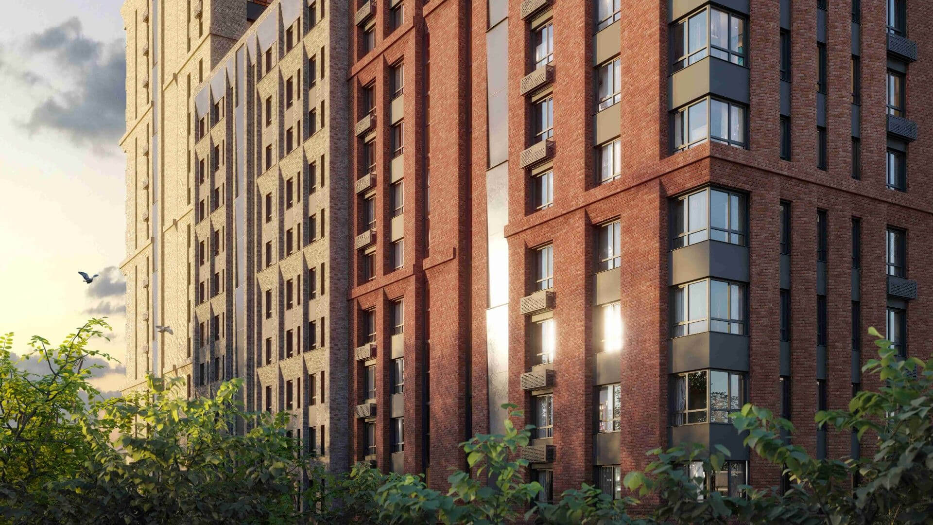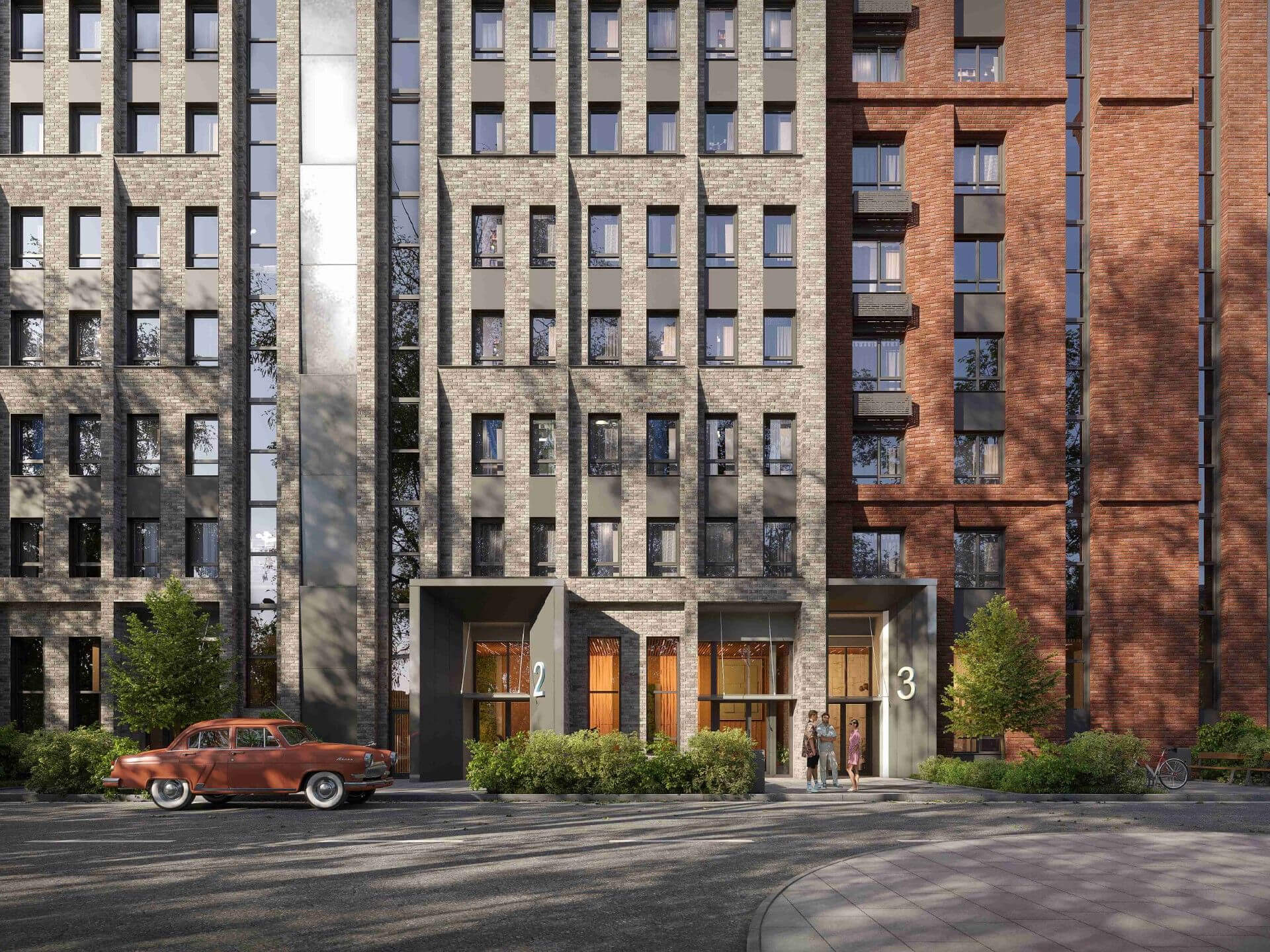 Архитектурный облик ЖК «Семеновский парк 2» подчеркнёт статусную роль комплекса в городской среде. Фасады в трёх цветовых решениях — красно-оранжевом кирпиче, бежевом меланже и мраморном оттенке — образуют ритмичный ансамбль с переменной высотностью от 12 до 26 этажей. Складчатая структура фасадов и хромированные элементы отражают свет и создают визуальный рельеф, подчёркивая классический стиль кирпичной архитектуры с современным уклоном.